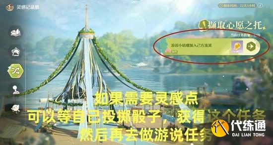 但如果想要灵感点,可以在活动里通过投掷巧石(骰子),在有感叹号的格子里有概率触发游说任务,然后再去做此任务;