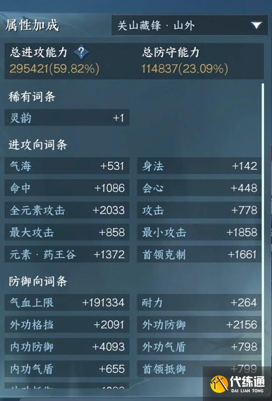 灵韵是2词条破霄(上赛季前后80万五行元气才赌出来,没想到2个月就淘汰了55555),开引灵阵后内功分会变高,这是裸面板。