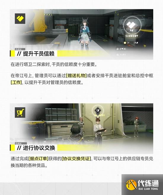 通过完成[据点订单]获得的[协议交换凭证]可以与帝江号上的供应链专员兑换当期的各种货品。