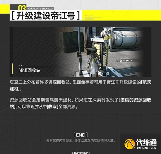 资源回收站会定期装满航天建材,如果您在探索时发现了[装满的资源回收站],可以靠近并从中[收取]全部资源。