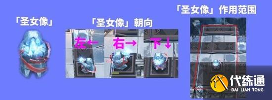 圣女像是本次活动中最主要的机制装置其共用两种重要的外观特性:“朝向”与“作用范围”