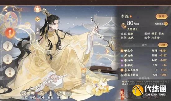 4.战斗开始时,李煜会将自己的暴强转化为效果命中。