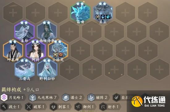核心羁绊:1月见岭7九光寒林2辅阵2谋士