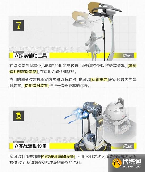 您可以制造并部署[各类战斗辅助设备].利用它们对敌人造成伤害或为队伍提供治疗,帮助您在交战中获得最终的胜利。