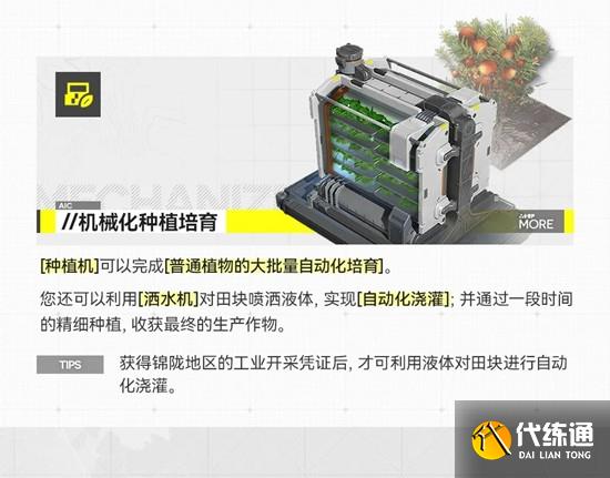 [种植机]可以完成[普通植物的大批量自动化培育]。您还可以利用[酒水机]对田块喷酒液体,实现[自动化浇灌]; 并通过一段时间的精细种植,收获最终的生产作物。