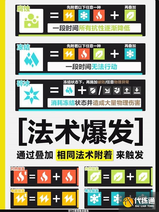 玩法很丰富,配上各种法术异常,考虑到不同附着会全部被消耗掉,基本上会是一个队伍基本上只用两种法术异常即可
