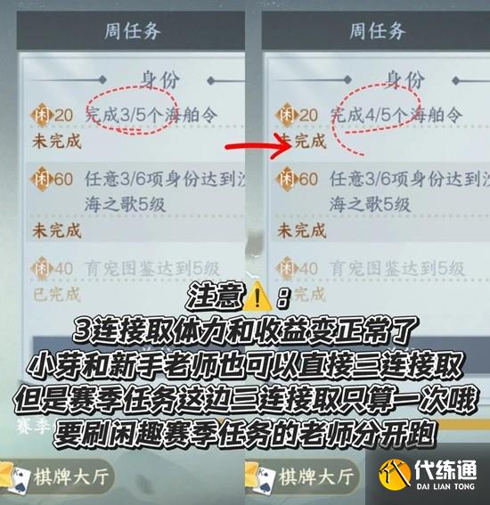但是闲趣赛季任务那边三连接取也只算一次哦