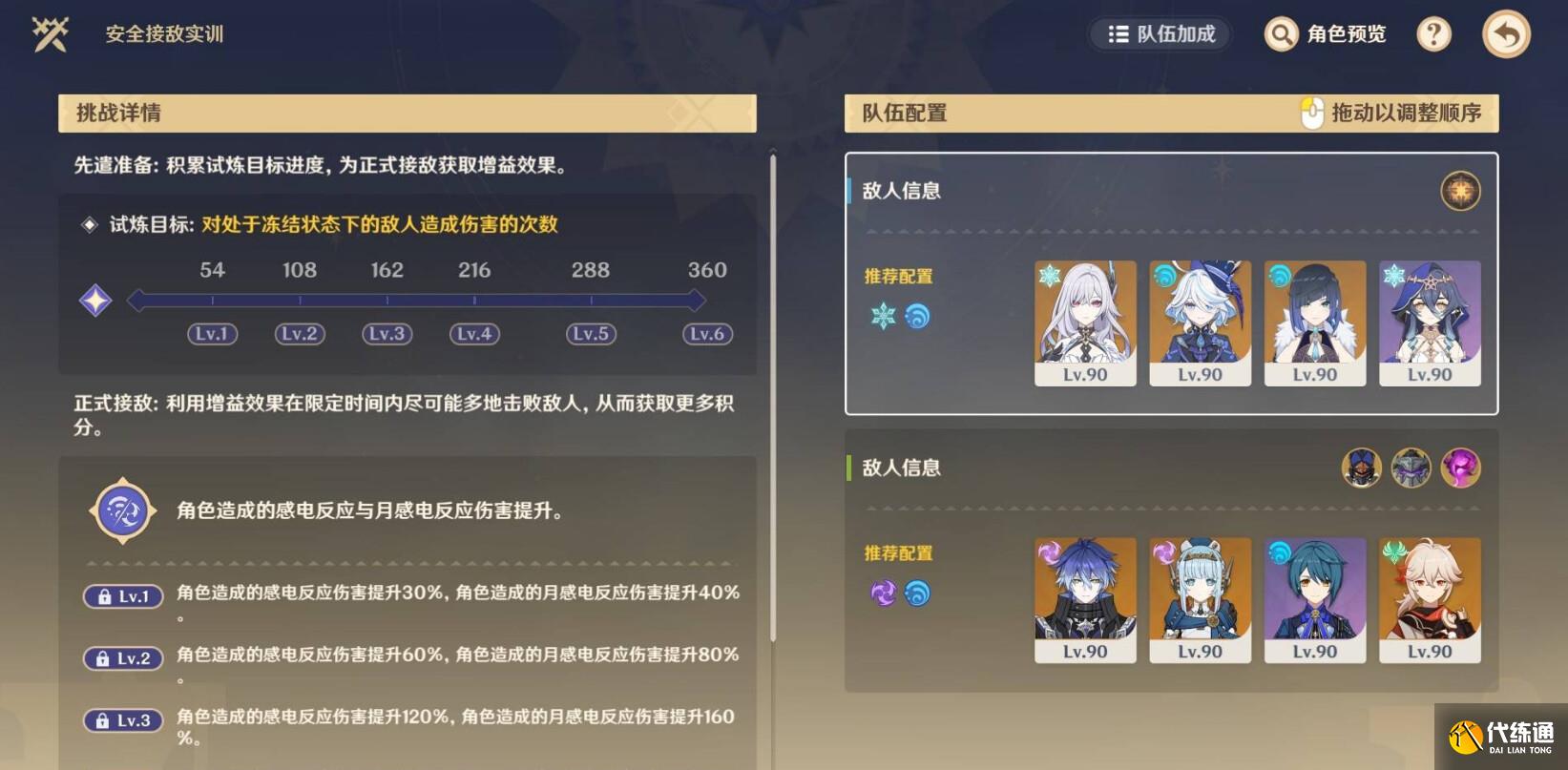 积分倍率选择10倍。本关先遣准备推荐水元素和冰元素角色,并且攻击次数非常重要,优先考虑选择丝柯克、神里绫华,另外像行秋、夜兰这样高频挂水的副C也很重要,能够频繁触发冻结反应。如果没有培养好的丝柯克最优阵容,可能很难将增益效果升到满级,因此可以考虑以Lv3为目标。