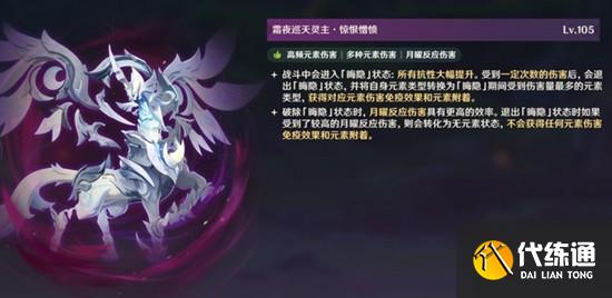天马的核心机制在于其抗性变化系统。战斗开始时,它拥有120%的全元素抗性,并会记录受到的所有元素伤害类型。当累计受到50次伤害后,系统将结算伤害次数最多的元素类型,并使天马对该元素产生永久免疫,同时自身附着该元素。若主要伤害来源于月曜反应或物理伤害,则不会触发免疫与附着效果。