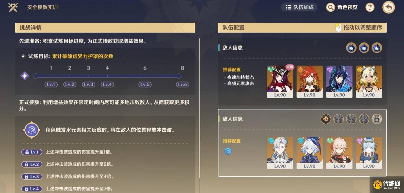 正式接敌的增益效果基于水元素相关反应触发,因此只要有水底,无论触发什么元素都可以(但不建议纯水),因此可以考虑能够快速打出伤害的相关阵容即可,例如丝柯克冻结队、妮绽放、草行久种门等相关队伍。