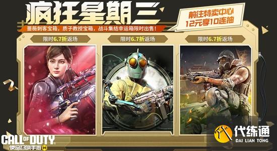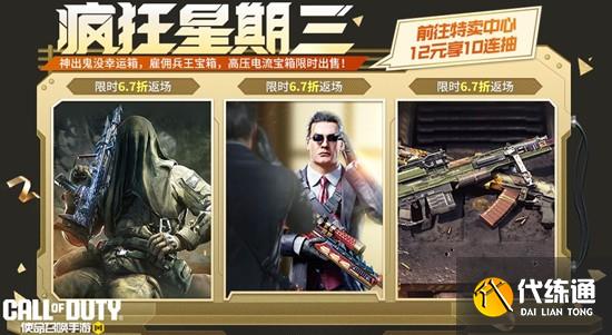 11月19日(下周三),疯狂星期三返场精彩不停,并将返场三款高人气宝箱,它们分别是神出鬼没幸运箱、雇佣兵王宝箱和高压电流宝箱。