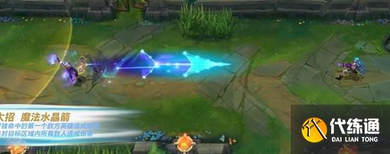 E技能鹰击长空在端游基础上增加了青光特效,鹰隼发现敌人时会展开星图投影,层次感十分丰富。大招魔法水晶箭飞行轨迹带有星空拖尾,回城动作也经过重新设计,角色会召唤出星空背景,与原画主题完美呼应。