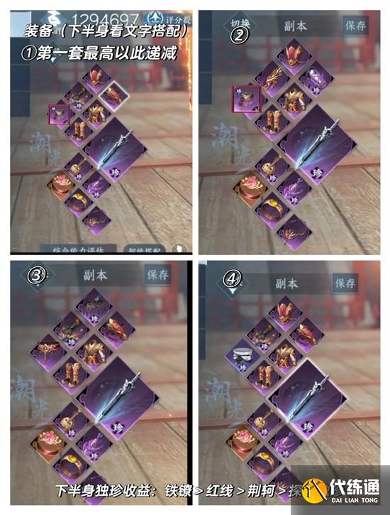 衣服袖子要两个不同的打造,出哪两个红色的打造就行,不追求紫或者金,但是要求基础属性一定要高(内功破防+元素攻击),比如你的衣服紫月隐基础属性750元素,那还不如1000元素的上赛季金色打造,所以要学会看基础属性算收益