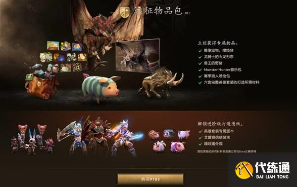 本次联动的基础款除了雕像宠物那个猪以外都是可以通过正常对局获得材料,但是基础款的升级解锁款式需要103元购入远征包解锁才能进行升级。