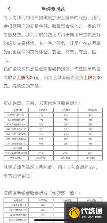 代练通的手续费模式堪称行业清流。平台仅收取5%-10%的手续费,20元手续费封顶,且不参与订单抽成。