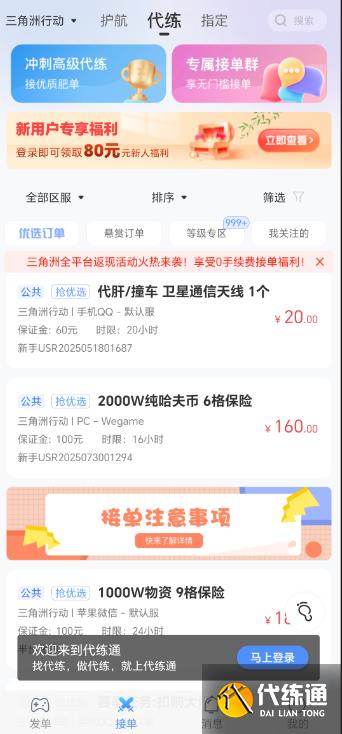 说了这么多赚钱的方法,那该去哪里接单呢?这就不得不提代练通平台了。在代练通上,单子数量众多,订单类型也十分丰富。不管是跑刀、护航,还是帮做部门任务,你都能在上面找到符合自己需求的单子。而且平台每天都会更新大量订单,完全不用担心会出现没单可接的情况。代练通就像一个大型的订单交易市场,各种需求应有尽有,能够充分满足不同代练者的需求。