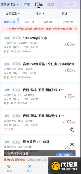 更爽的是,代练通上的《三角洲行动》订单多到你挑花眼!想肝哈夫币?有!想冲段位?有!就连帮老板托管物资这种轻松活儿都有。关键是价格透明,每笔单子多少钱、要求啥都写得明明白白,不用跟老板掰扯 “这活儿值多少钱”,省了不少口舌。
