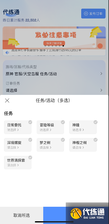 玩原神时,有人工作忙没时间刷冒险等级、过前置魔神任务,导致隐藏任务无法触发;有人在解谜、打怪环节卡关;还有练度高、技巧熟的玩家想靠闲置时间接单变现。代练通绝对是首选,我用它三年多,接单自由、单子海量,打开APP,原神相关订单任选,代练「哀铃的挽歌」全流程、刷冒险等级、过前置任务等都能接,碎片时间轻松变现。找代练也方便,一键发布订单,直面大神代练,价格公开透明,无隐形消费。若订单被打坏、账号受损,平台会依约定扣除代练保证金赔付,告别私单被骗、售后无门的烦恼。