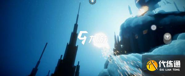 在探索的最后一个阶段,大家会看到移动速度飞快的太阳,继续向前飞,有一座类似于金字塔的建筑,注意靠左飞一些,右边有风墙会阻挡我们向前前进,可以在金字塔的顶端稍微休息一下,还是继续向前飞,如果能量不够的话,贴着云彩飞。来到真正城堡的边缘之后,屏幕就会变得特别黑,建模都是实心的,大家不用担心,可以直接站上去歇脚。最后直线向上飞,看一下周围,就可以完成星空城堡打卡了。