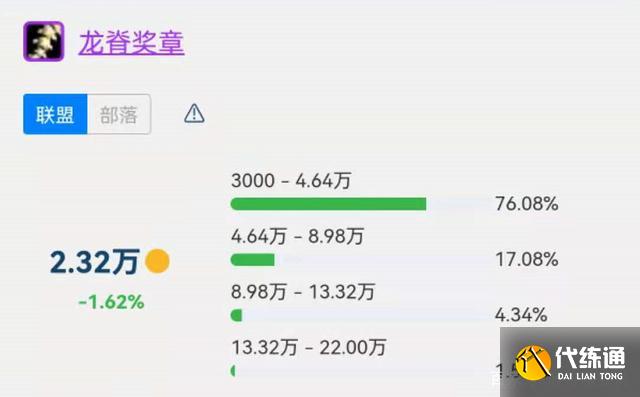 在综合数据方面,之前一段时间龙脊徽章的平均价格都在3W金币左右,而到了最近几个CD,龙脊奖章的价格也在显著下降,目前已经降到了2.32W金币。虽然这个价格依然很高,但是降价幅度却是非常大的。