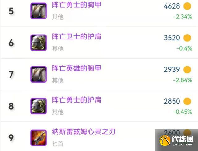 在T4胸甲方面,之前玛瑟里顿金团频繁出现上万金币的胸甲,而到了现阶段同样很少看见了,平均价格也越来越低。