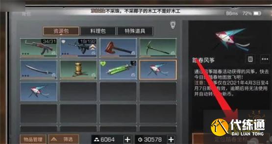 2、接着开启自己的背包,在背包中可以找到风筝,就能定位放飞坐标。