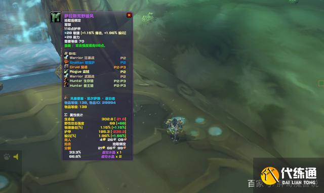 无论是皮甲,还是锁甲,乃至板甲,除了猎人之外,只要牵扯到物理DPS,那么这件装备就是P2-P3阶段最好的选择,原因就是这件装备的精准属性是可遇不可求的。对于熊德来说,这件装备甚至可以直接穿到太阳之井,更换T6腰带。