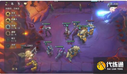 除机器人之外的斗士全部顶前面,其余都缩角落,到九级时挂上卡莎对着对面的c位跳。注意熊熊不要放在对方输出脸上即可。