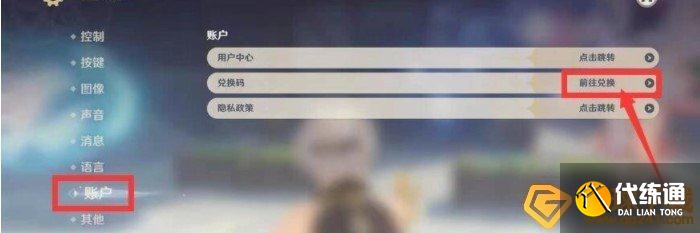 3、点击账户,然后点击兑换码后面的【前往兑换】;