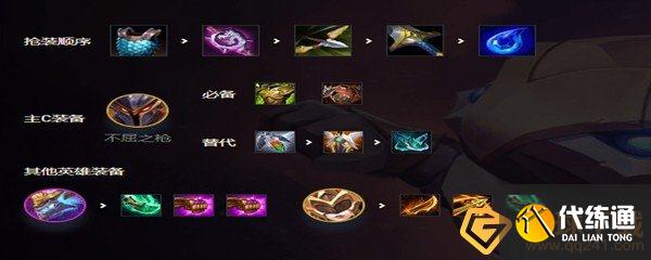 不屈之枪的装备是传统的反甲、狂徒、救赎三件套。因为不屈之枪有龙羁绊,能够为英雄提供50%魔法抗性,因此不太怕魔法伤害,相反物理防御至关重要。