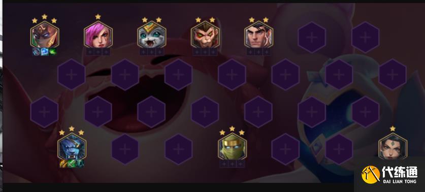 阵容组成:西斗之飒(豹女)、未来守护者(杰斯)、海上幽影(派克)、影疾忍(劫)、皮城执法官(蔚)、齐天大圣、狻猊之心、北境之傲(狮子狗)