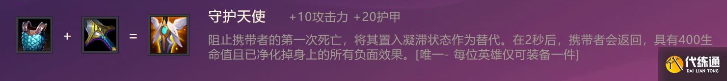 2、北境之傲出装分析:作为一个潜行者核心单位,跳跃到敌方后排,切敌方C位,配合无尽打出高额的伤害,守护天使必备的防止被秒。