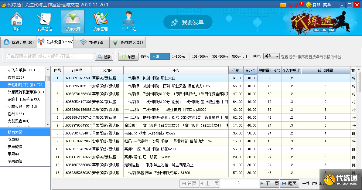 对代练的需求也越来越多,代练的平台也有更多的选择,淘宝上有很多的游戏代练的店铺,但是淘宝上的商家他们自己的店是没有自己的打手的,如果游戏账号出了问题,淘宝最多也只是把您的资金退还给你,没有其他的赔付,淘宝商家的打手也是自己把单子发布在各大平台赚取差价来进行盈利,您如果找代练不如自己去平台跟打手联系打单,没有中间商赚差价,给您减少了一半的代练费用,价格公开透明,但是找平台也要找正规较大的平台以防被骗哦,代练通平台是现在国内最大的一家平台,成立时间也已经有八年,单子打坏会有相对应的赔付,单子打完系统会自动结算直接打入代练通账号可随时进行提现,非常的方便安全。