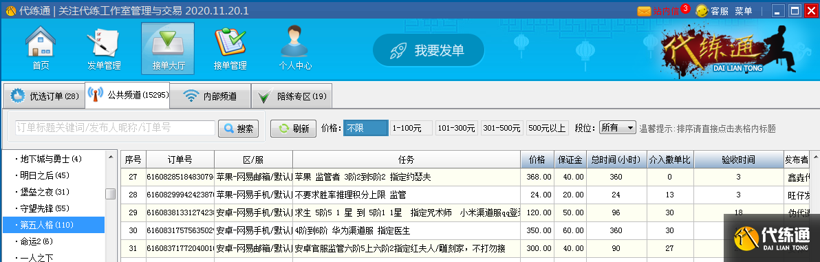 1:首先是贴吧:游戏贴吧聚集了很多玩游戏的玩家,代练和老板都会根据个人的需求去发帖留下自己联系方式等待人来联系自己,这种方式耗时比较久,有时候可能一天都没有人回复。而且在贴吧交易没有一个安全保障,网络上你也无法识别对方是否是骗子,轻则骗了一点钱,老板跑路,重则账号被盗。