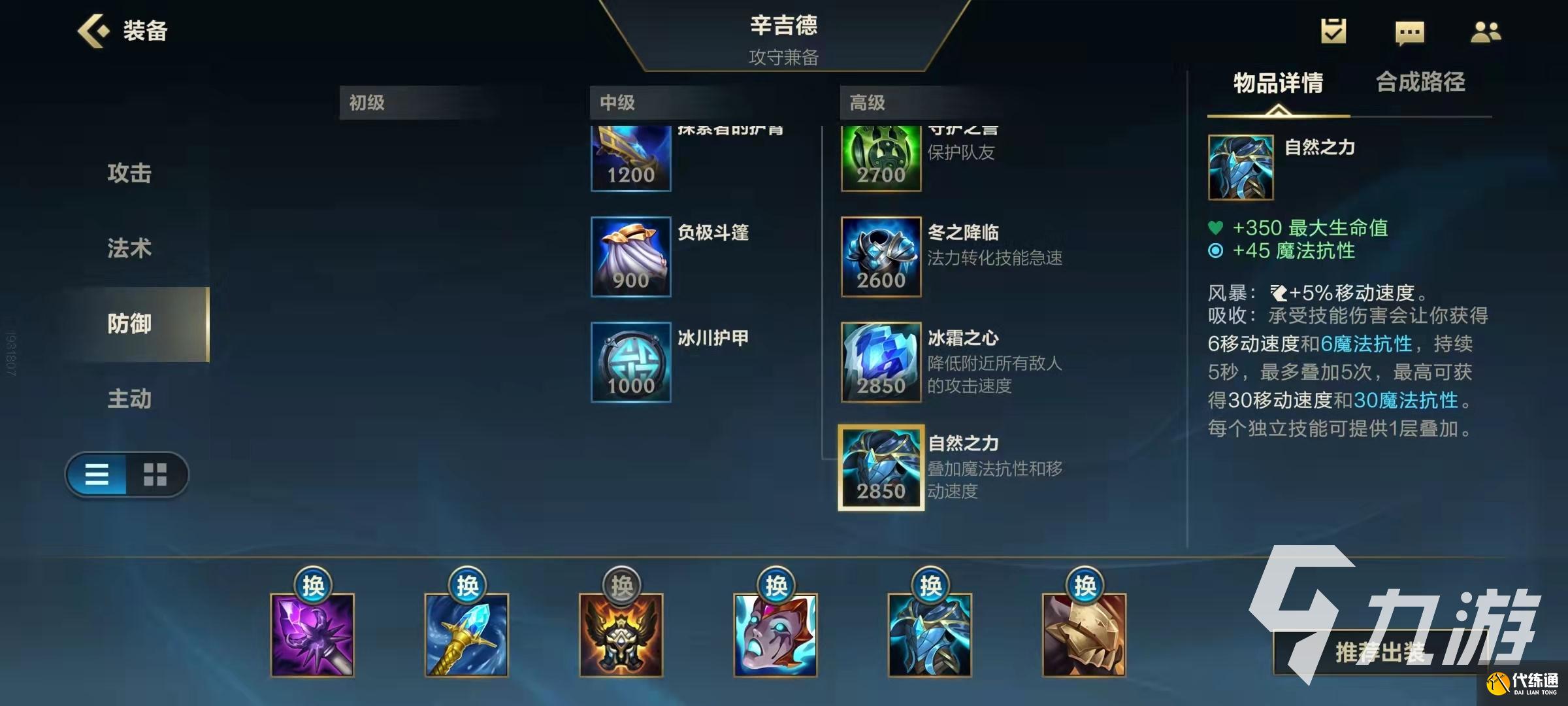 正义荣耀、亡者的板甲、自然之力则是跑酷流炼金的核心装备,正义荣耀为炼金提供爆发的一定速度,可以用于开团。亡者板甲和自然之力分别提升炼金的护甲和魔抗,并炼金依然是半肉流的玩法,其次这两件装备还为炼金提供额外的百分比移动速度,这样炼金跑起来非常轻松。