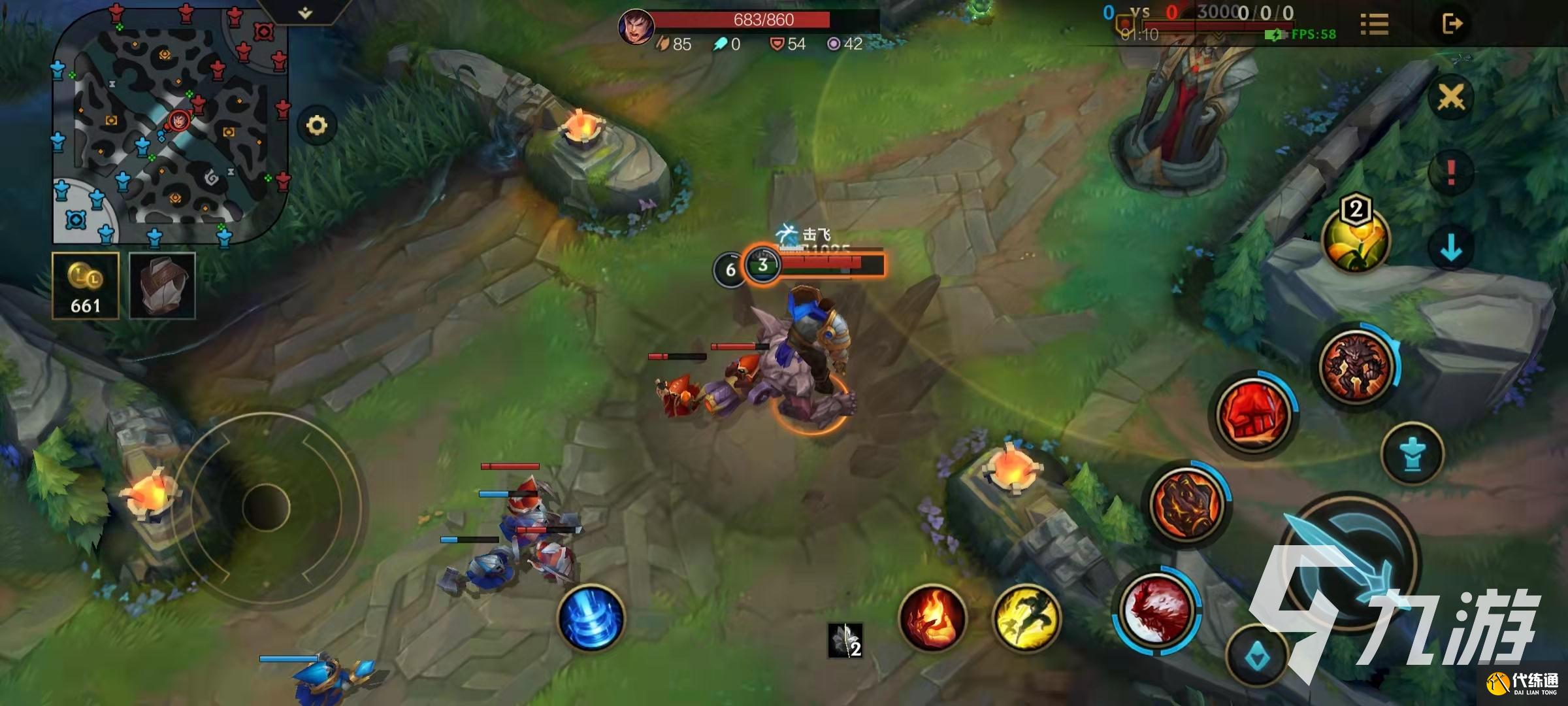 对线石头人发育为主,毕竟吃大招和装备。有机会就1技能消耗对手,劣势时1技能用来补兵等打野即可,大招配合打打野的gank非常强势。打团石头人肩负开团的责任,可以闪现接大招,开团更加出其不意。一个大招就可以直接秒杀对手的后排,后续金身规避伤害。
