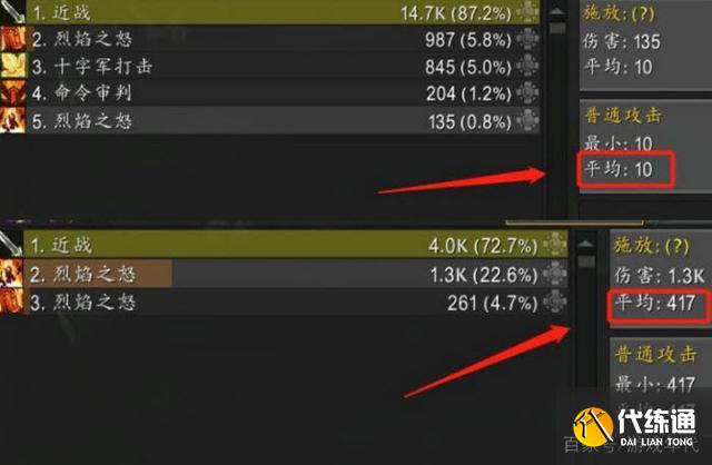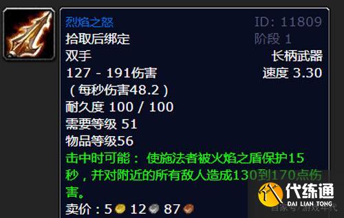 烈焰之怒是50级武器,秒伤还不到50,关键是武器特效:击中时可触发一次火焰AOE,基础伤害不到170,随后会给角色附加一个持续15秒的火焰之盾,类似术士小鬼的技能。火焰之盾状态下,被敌人攻击会反击10点火焰伤害,这也是基础伤害。最近,有防骑玩家发现,这火焰之盾的伤害和初始AOE伤害都受到法伤加成,而且加成幅度极大。400法伤以上,10点火焰之盾反击伤害,会被提高到418点左右!