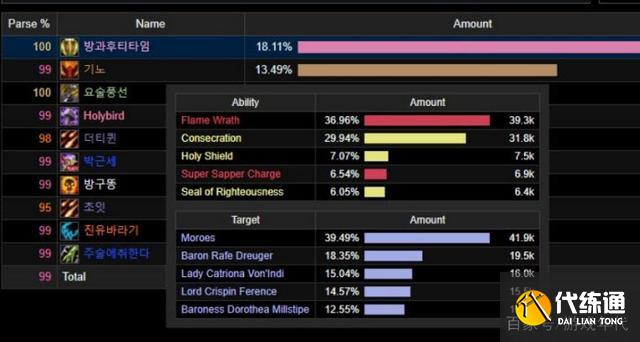 目前使用烈焰之怒的骑士玩家表示,武器特效触发几率不高不低,大约15到20秒触发一次,由于防骑没有十字军打击这种近战武技,所以并不算很稳定,需要提前拿出来砍怪。在踏潮、海度斯、莫罗斯等BOSS战都有不俗效果,使用十字军圣印,触发几率更高。目前有防骑在莫罗斯战斗中,打出了巅峰4.2K,平均3.7K的秒伤,烈焰之怒特效伤害占比达到了32%以上,奉献才27%。由此可见这个50级的蓝武器,在防骑身上是多么超模。