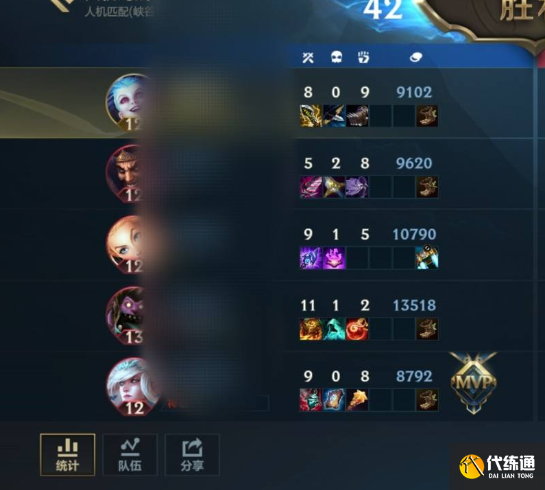 点击后即可看到此局所有英雄,在该界面点击左下角的“统计”选项即可查看输出。
