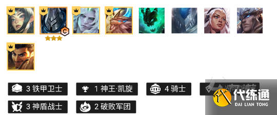 阵容羁绊:四骑士三神盾战士三光明哨兵三铁甲卫士两破败军团。