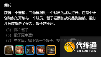 福星海盗是云顶之弈手游此前赛季玩家非常喜欢的羁绊,凭借前期的连败,后期可获得大量的装备、金币以及一些道具,而在S6福星海盗又以赏金猎人的羁绊全新回归,赏金猎人玩家可在替补席获得一个藏宝箱,当然玩家赢得一场胜利就可以投掷投掷来获取藏宝箱的奖励,玩家开启宝箱的时间越久,那么投掷的骰子就会更幸运。简单来说赏金猎人就类似之前赛季的福星,依旧是连败获取的奖励更丰富。