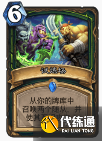 在卡组的解场方面,有:烈焰咒符,献祭光环,怒火,引月长弓。在卡组的过牌方面,有:二段跳,滑翔,混乱打击。总得来说,这是一套通过试炼场来超展开压死对手的卡组。