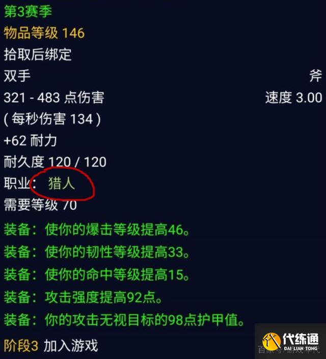 上面2件PVP毕业神器,加起来只要2000分购买,P3开放第一天就可以去买了。混分只需要花你2周时间,现在就可以开始组队混,全败都可以(当然时间花费更多)。完完全全是给猎人在P3的福利,当年TBC时,这个双手斧就被称为便当斧头,P3开了大家一定不要忘记。