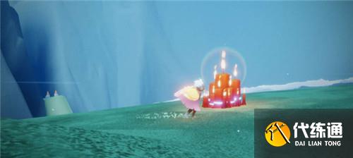 3、我们来到两个石墩这里,也就是彩虹的右下角,可以看到旁边的石台上面就有一堆蜡烛,下图所示,这就是我们要找的蜡烛了。