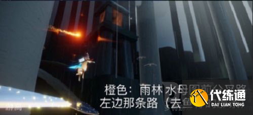 2、「收集橙色光芒」雨林水母图前左边分叉路(高台小金人附近)。