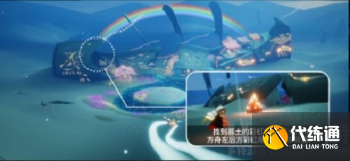 2、到达遗忘方舟的位置在船上面可以看到彩虹;