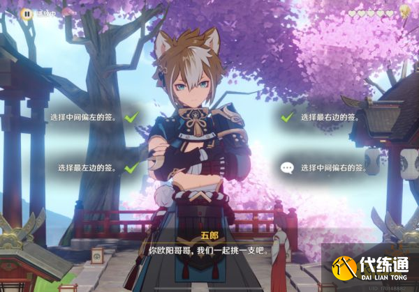 原神五郎邀约成就达成方式被别为完成结局3可获得说还是不说成就,完成5个结局可获得海祇大将,在神社抽到过所有的运势签可获得运势无常成就,多次返回抽签祈福这个节点即可完成。