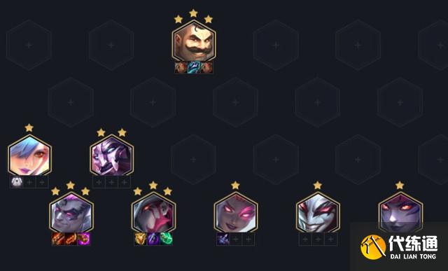 除了这三个必须递三星的之外,还有曙光,加里奥,阿卡丽,小丑,婕拉等五个英雄棋子,这个阵容是一个八人口的阵容。