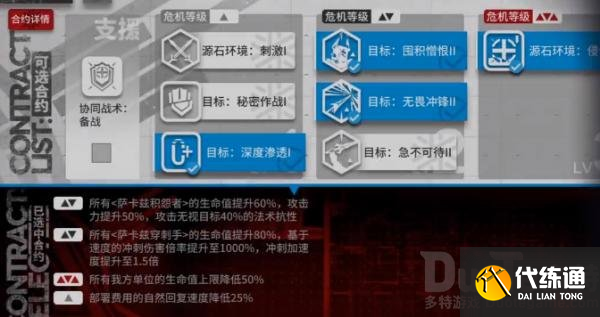 【目标:囤积憎恨 II】所有<萨卡兹积怨者>的生命值提升60%,攻击力提升50%,攻击无视目标40%的法术抗性。