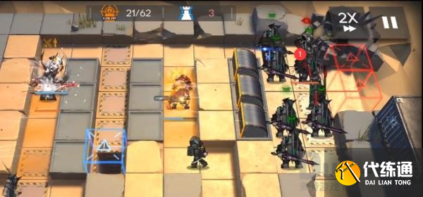当群攻近卫打掉正面小怪后直接撤退,放萨卡兹积怨者进点。